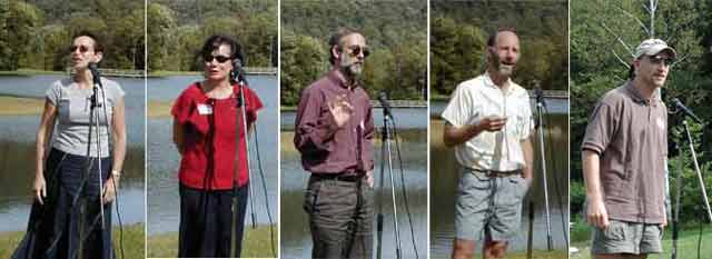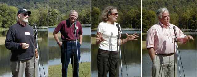 As one person was speaking, a lovely Blue Heron landed on the water.