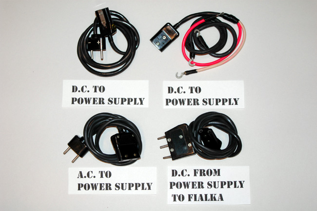 Two of the cables that connect the Fialka to its 24 volt power supply.