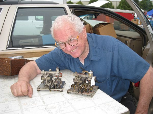 This photo shows Gil Schlehman, K9WDY showing his box of extraordinary trader