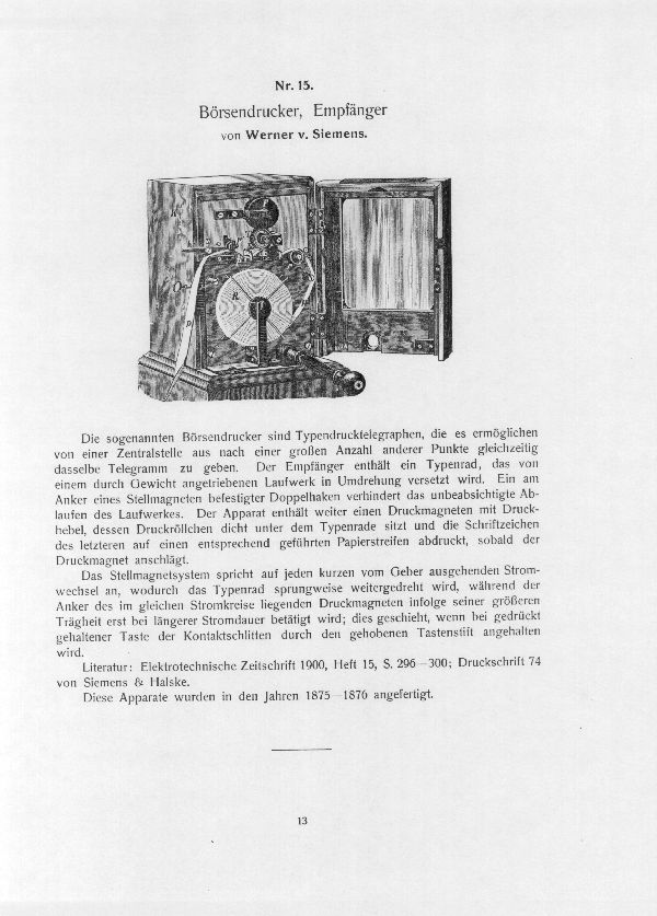 "Zeigertelegraphen" made by Siemens with the Wagner Hammer for moving the