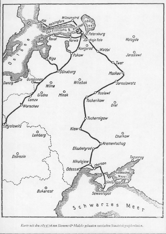 in 1850 (Dashed Lines). (The map is from the book Hundert Jahr Telegraphie in