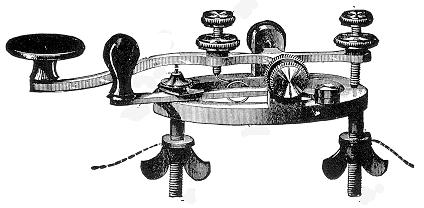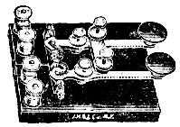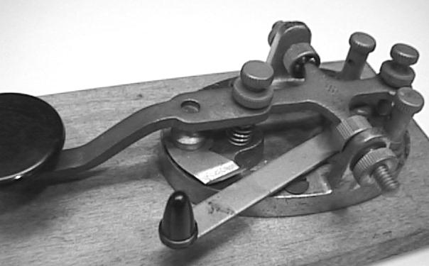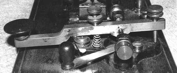 Most of the land-line telegraph keys used in Europe and other countries outside the United States have heavy, straight brass levers, heavy brass supports, and pull-down or tension springs. They are quite common in Europe but they are hard to find in this country. [130]