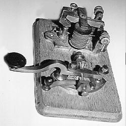 These lovely KOBs enclosed large and sensitive coils within a wooden box. Even the weak voltages from long telegraph lines would activate the coils and pull the armature to make a clicking sound which was enhanced by striking a piece of metal attached to the wood of the box. [164].