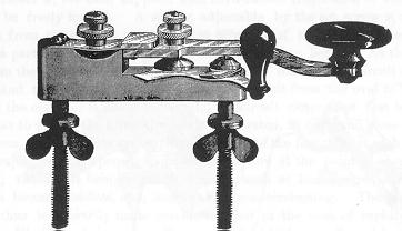 The interesting "Steiner Key" design of 1886 eliminated the use of a trunnion and pivot by using a springy strip of steel as the flexing mounting for the lever. Manufactured by Western Electric, they are hard to adjust and were not popular. They are fairly scarce. [118]