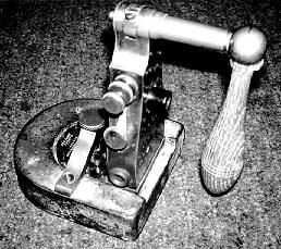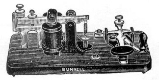 This Bunnell Non-Electric Practice Set has the key knob directly attached to the sounder armature. It is cast as part of the armature and extends off to the side. [162]