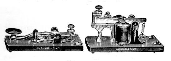 Bunnell made a line of inexpensive KOB practice sets consisting of keys and sounders with black-painted sheet metal key and sounder supports. They were so simply-made, that many were thrown away as junk and they are now somewhat hard to find. [154]