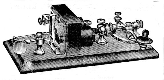 NOTE: Many Triumph-Style keys from this period carry the designer's or maker's names. However, Many just carry the names of the companies for which they were made, such as Western Union, and various local telegraph companies and railroads. Some of the company names were stamped onto the bases or shorting levers of keys by the company after special unlabeled keys were purchased from Bunnell or other makers. [122]