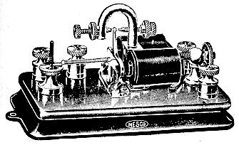 Sounders made after about 1881 can be identified by the fact that they use a VERTICAL Spring to position the armature. Both small sounders and the large, sensitive, "Mainline" sounders are VERY common. [140] The less attractive and more recent aluminum armature sounders bring less. Most work on 3-6 Volts. If you want to make a sounder work, I suggest that you start with 1.5 volts and gradually increase the voltage until you get reliable pull-in and stop at this point so that you will not overheat the coils or endanger the insulation with higher voltages.