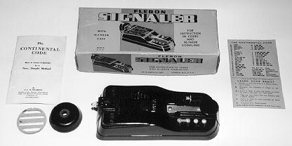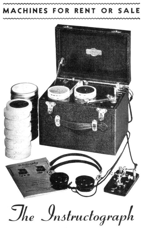The Instructograph was another device which was very widely used for code practice. It used a paper tape with holes punched into it which allowed electrical contacts to be closed and opened automatically. The contacts then activated a sounder used for land-line Morse Code training. Later models used a buzzer or built-in oscillator which produced a tone. These models were used to train radiotelegraph operators. Several versions were available from hand-wound spring motor versions with battery-powered oscillators to 110V models. They are VERY common and were in production as late as 1983. [198]