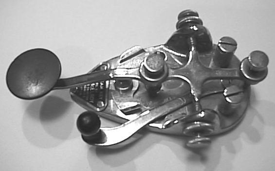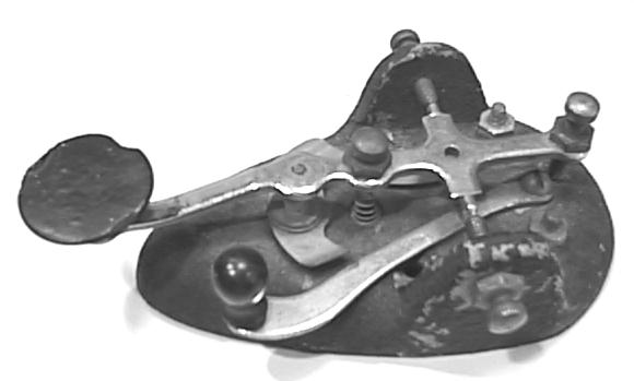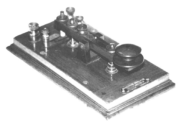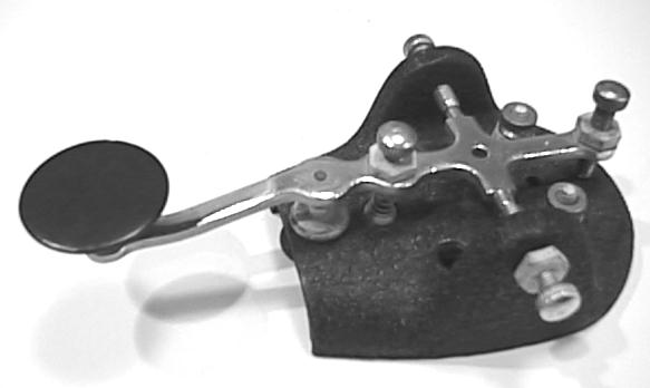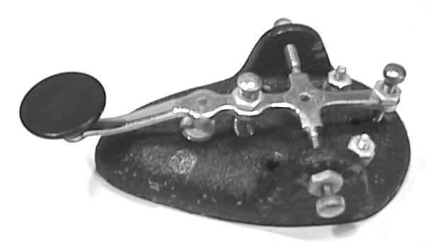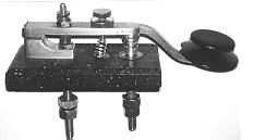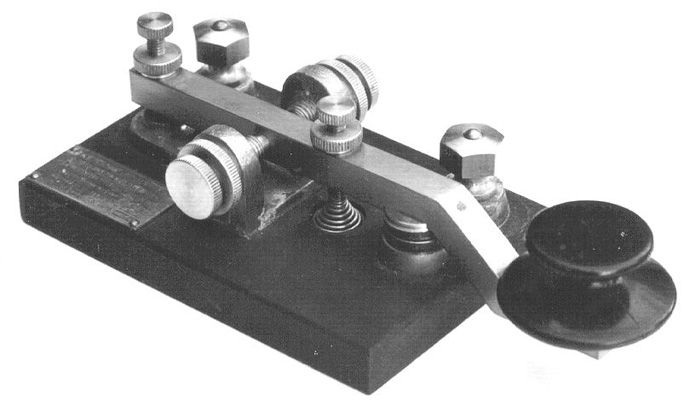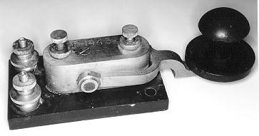 Also called the "Standard Wireless Key". An incredible number of keys with this design were made from the 1920s to the present. The earliest ones were designed for keying high current primaries of spark transmitters. They can be identified by their 1/4" contacts and the mica insulation under the brass base. [460]