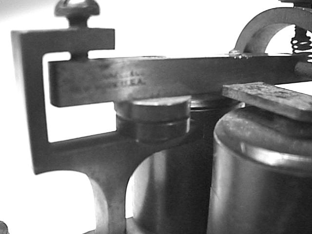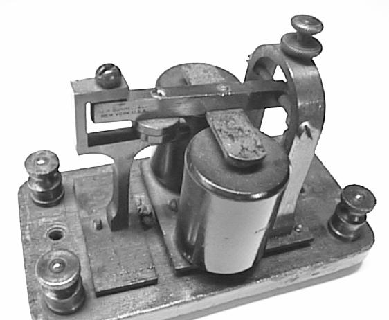 This Bunnell sounder has large silver contacts mounted on the armature and the anvil.