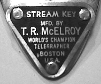 Its label reads: Stream Key. Mfg by T.R. McElroy Worlds Champion telegrapher, Boston,USA [524]