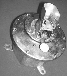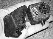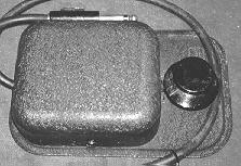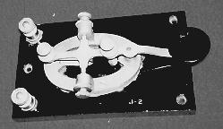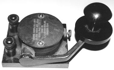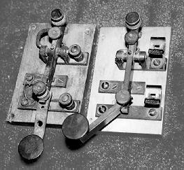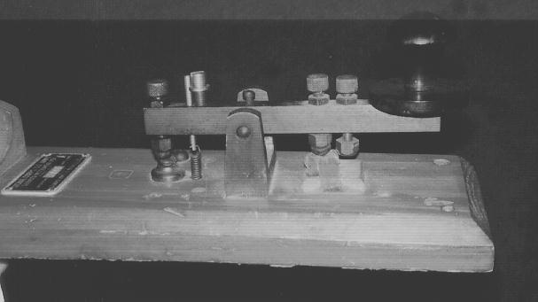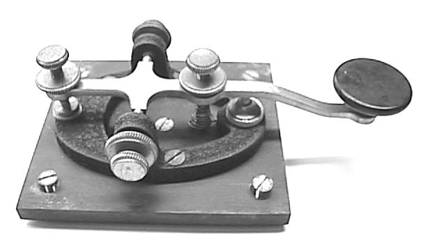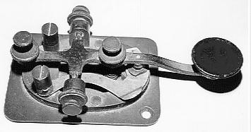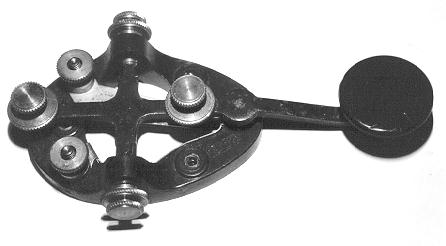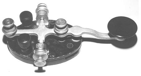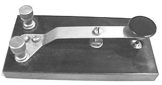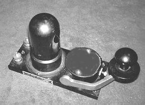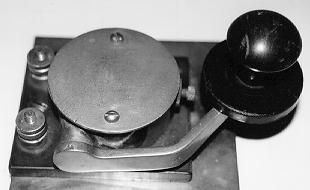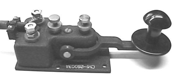 This key was mounted on the front panel of a WW-I radio set. The contacts were enclosed by a leather membrane so that their sparks would not ignite an explosive environment. [670]