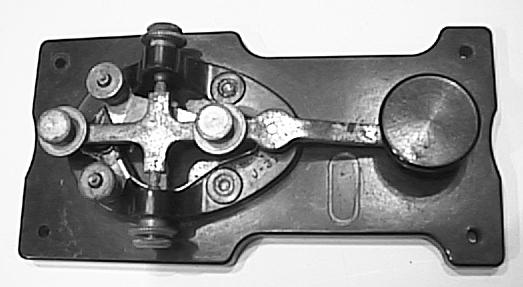 This key consists of an oval "Triumph Style" key mounted on a 3-1/2 x 2-1/2" metal base. It was used with numerous WW-II transmitters. [632] (See summary of Larry Nuttings book on page 81.)