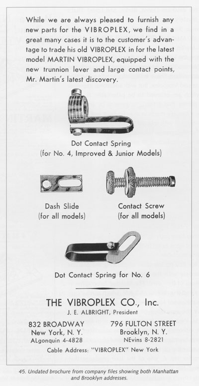 replacement parts. The Vibroplex Company has a long tradition of taking good