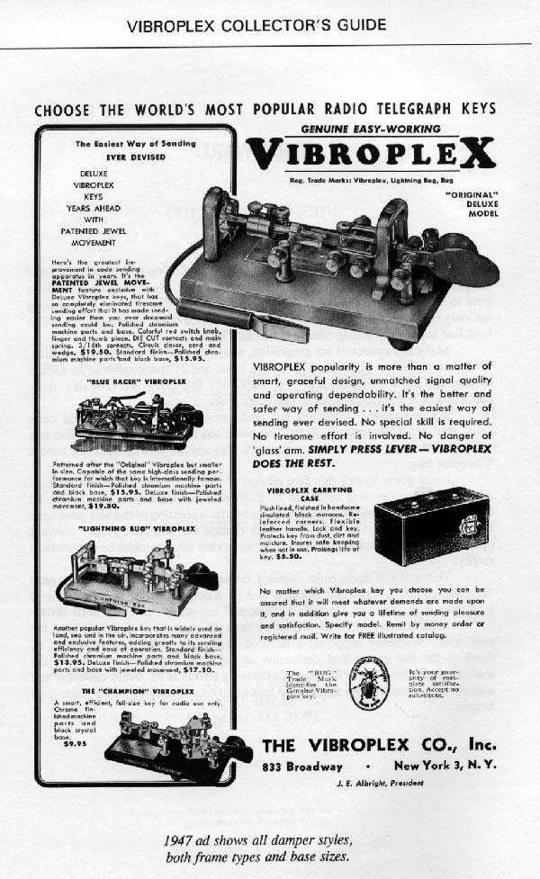 Advertisement from 1947. (From The Vibroplex Collectors Guide by Tom French: