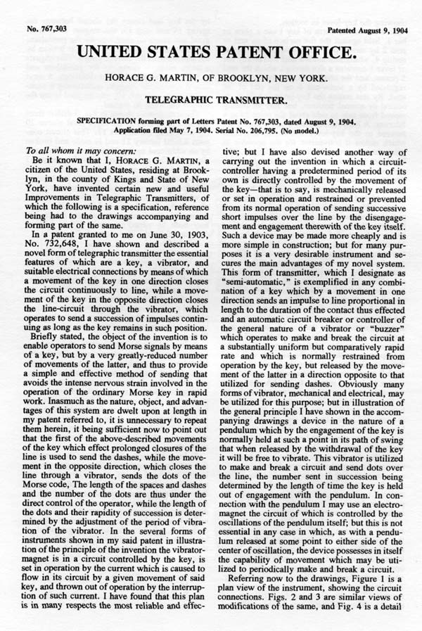 Here is the first page of the 1904 Martin Patent