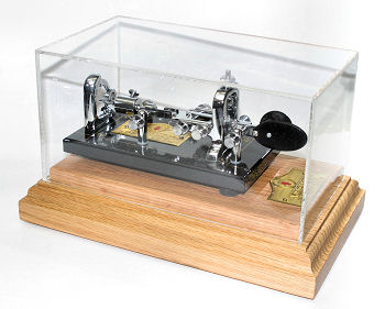 The Vibroplex® 100th ANNIVERSARY ORIGINAL BUG (1904-2004) - This key duplicates one of the most popular early bases, a "weathered" black Japan-like powdered coat finish with gold pin stripe border. Chromed upper parts match the Standard Original Bug with black paddles and unique serial numbers. Weight 4 lbs. Cord not included. LIMITED QUANTITIES!! A REAL COLLECTIBLE!! $209.95 Beautiful Display Case for your 100th Anniversary Original - $119.95