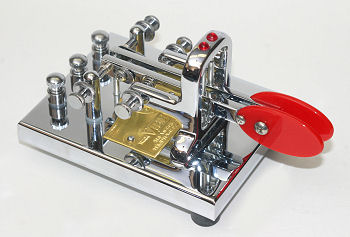The Vibroplex© Iambic is the modern descendent of the Original. It incorporates the traditional Vibroplex© look for use with modern electronic keyers. The code speed with the Iambic depends on the particular electronic keyer with which it is operated. And, you get the same crisp operation at 5 words per minute as you do at 50+ wpm. Weight 5 lbs. Cord not included. Available in four models: Iambic Gold - The entire base is 24K gold plated, with bright decorative chrome top parts. Smooth, jeweled movements for precision control. Stainless steel hardware where appropriate. $309.95 Iambic Presentation - 24K gold plated brass plate on a highly polished decorative chrome base with bright chrome top parts. Its silky smooth, jeweled movements are like those found in fine Swiss watches. $289.95 Iambic Deluxe - The same highly polished decorative chrome base as the presentation model, but without the 24K gold plated brass plate. Jeweled movements. $199.95 Iambic Standard - A neat, crisp black textured finish base with bright decorative chrome top parts. Non-jeweled movement. $159.95 |