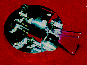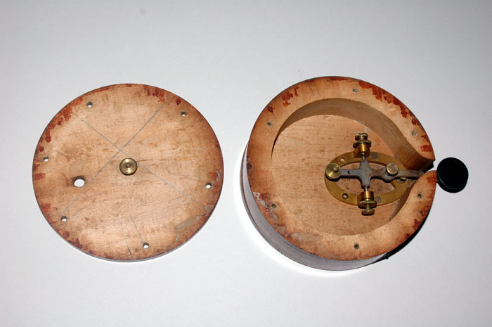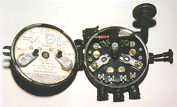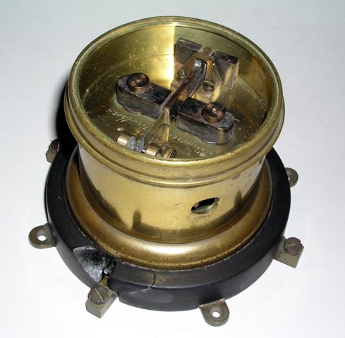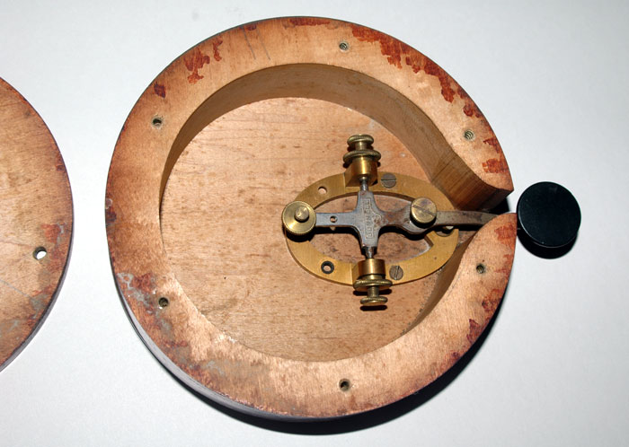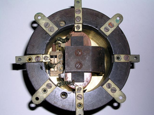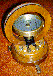 Small 3" diameter table-top galvanometer mounted at an angle in a very