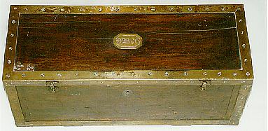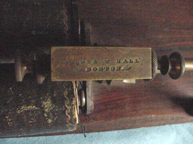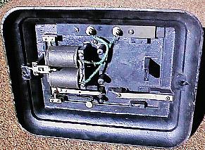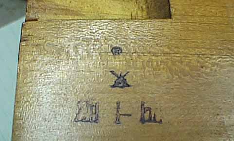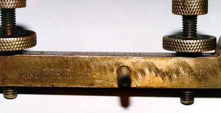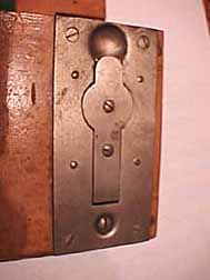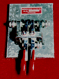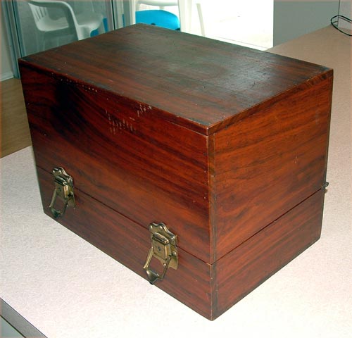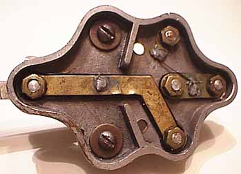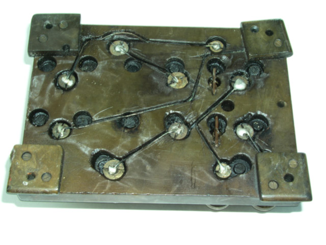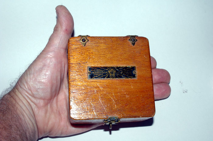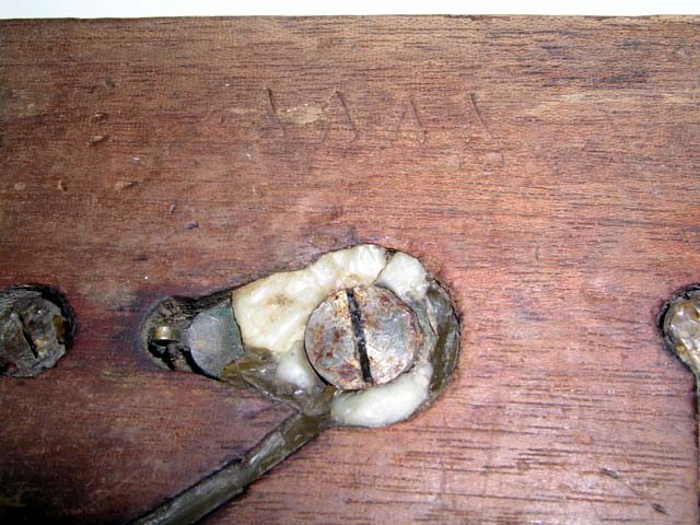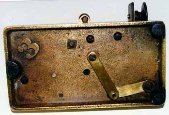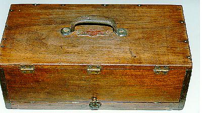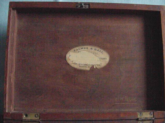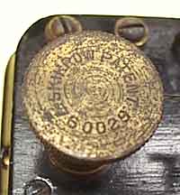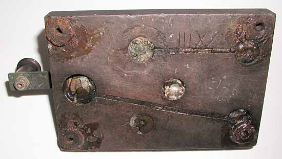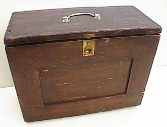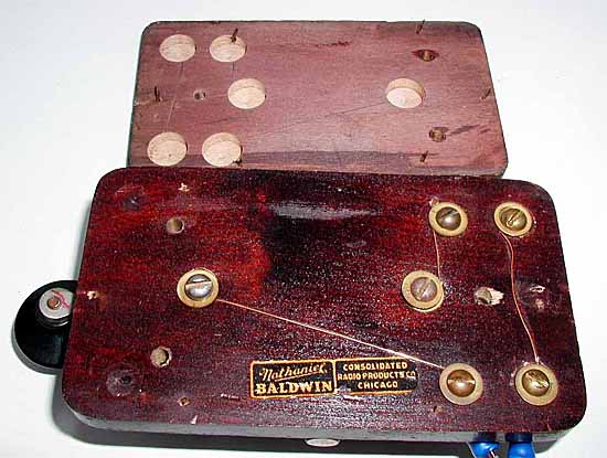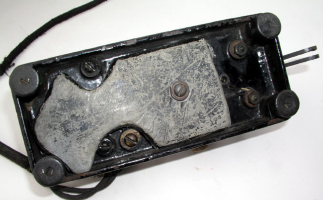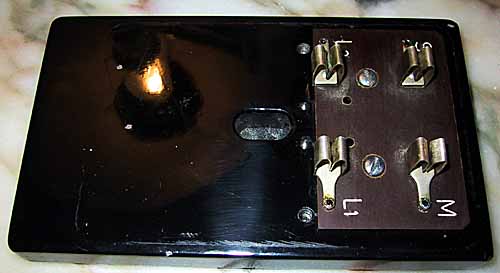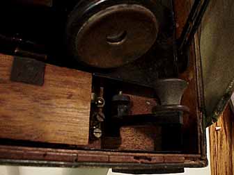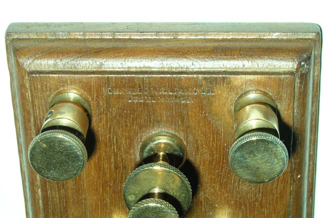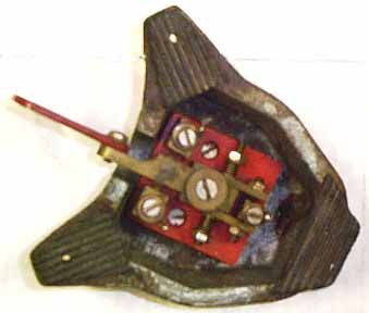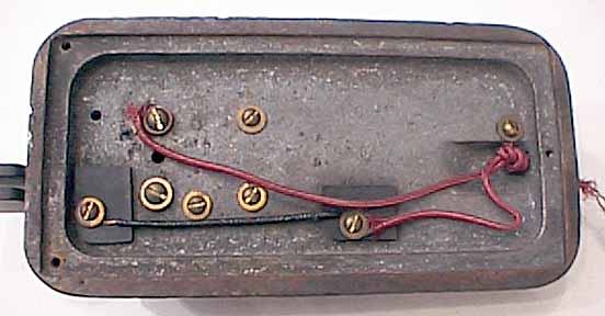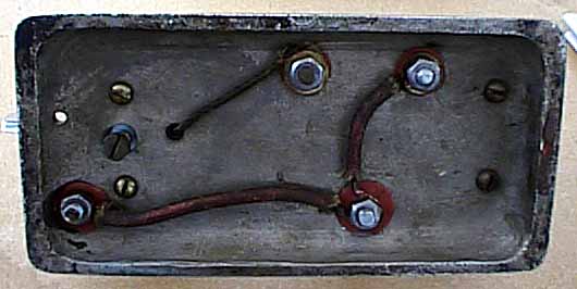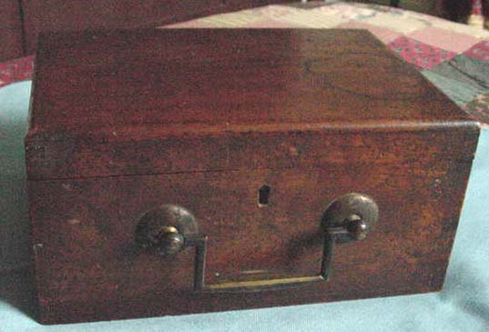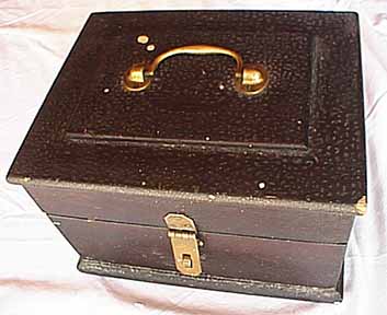 old wooden case. Beveled glass. Large brass contact screws. Bottom of