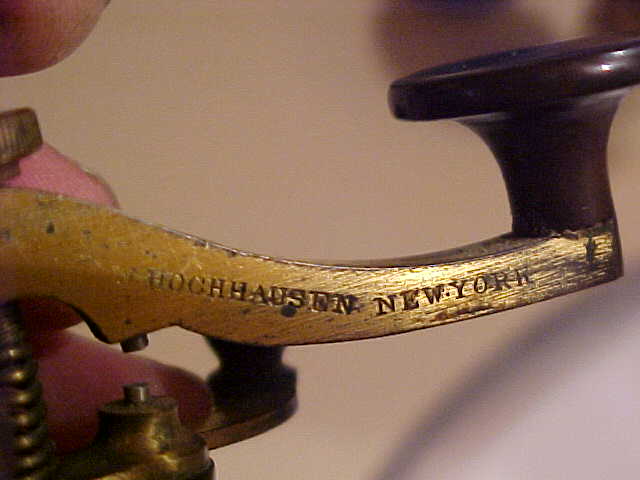CLOSED/LINE CLEAR. The upper portion is supported by brass pedistals,