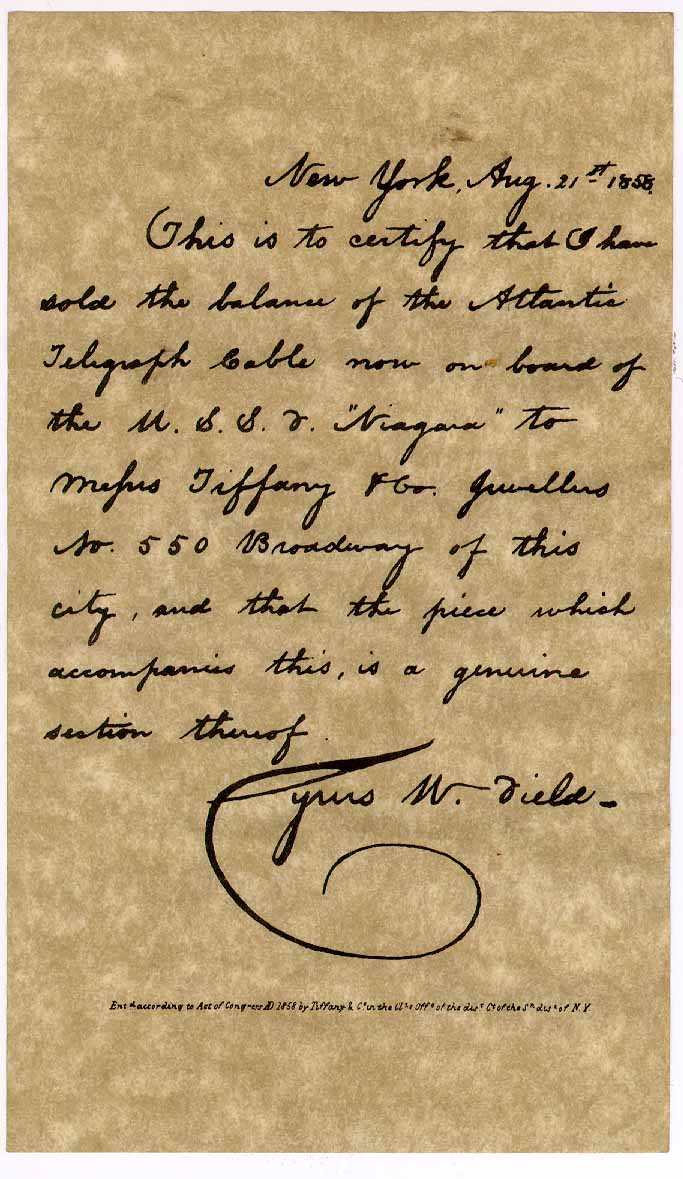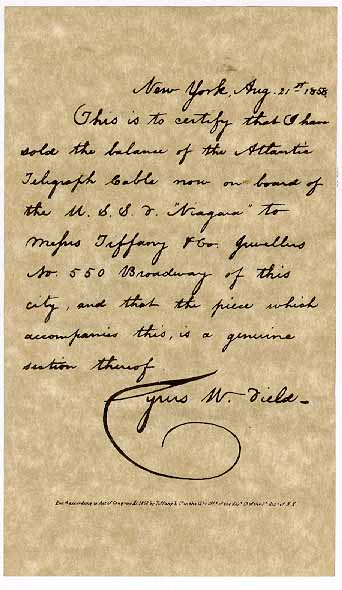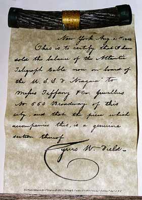 (This cable is now in the Samuel F. B. Morse Museum, Poughkeepsie, NY.)