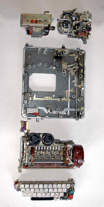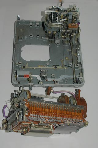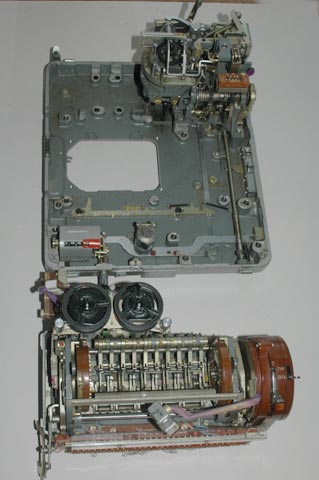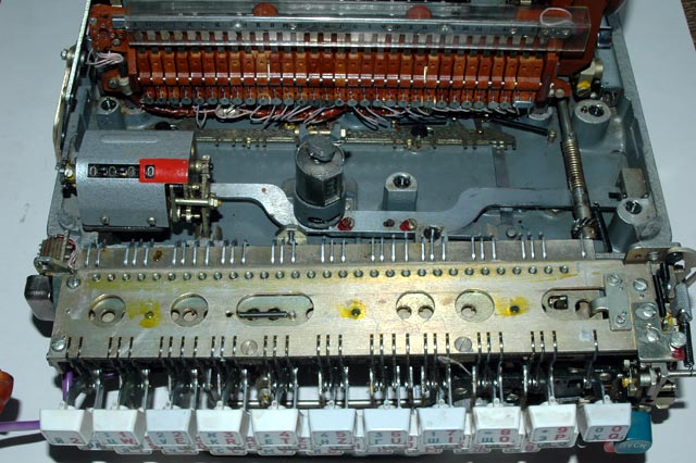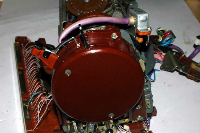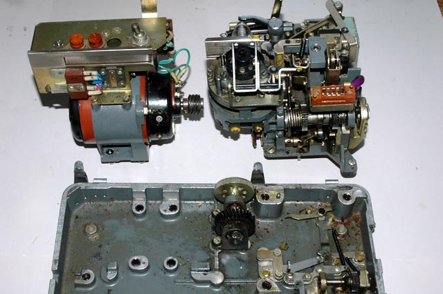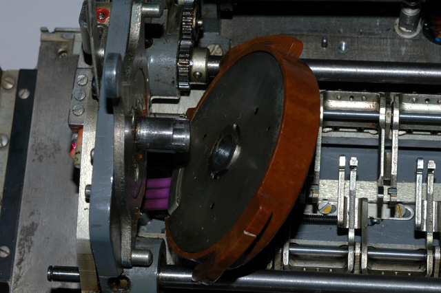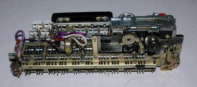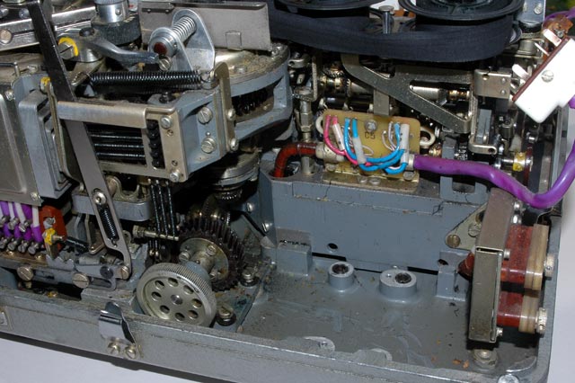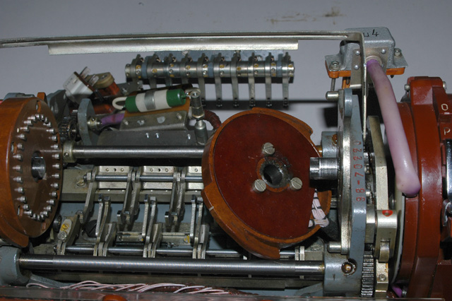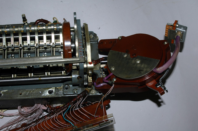 drive the paper tape reader mechanism can be seen on the right. They engage a