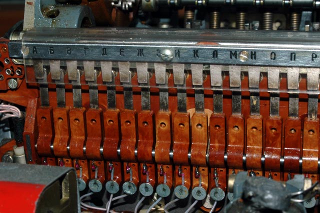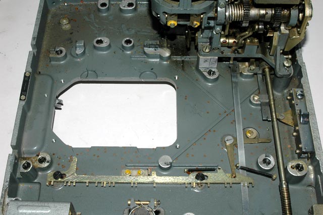 The base plate of the M-125-3MN Fialka after removal of the paper tape