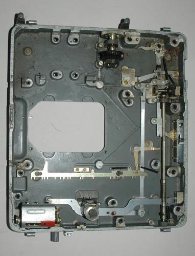 The base plate of the M-125-3MN Fialka after removal of the motor module,