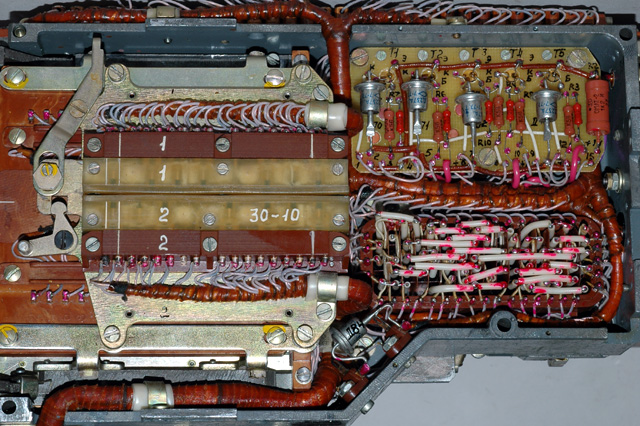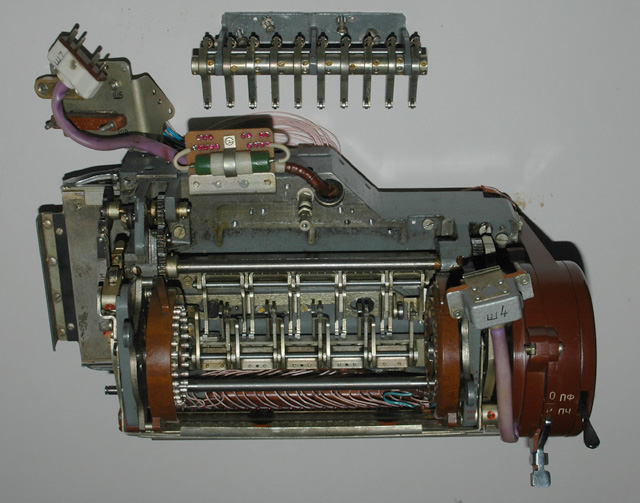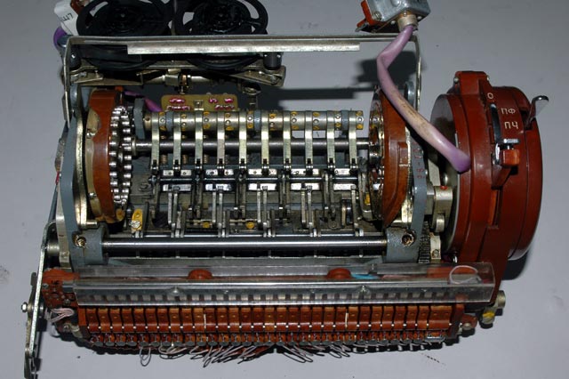 the M-125-3MN Fialka. The brown rocker switches on the rotor assembly are