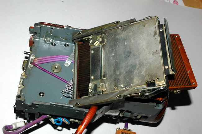 In this view the entire punched card reader mechanism has been swung to