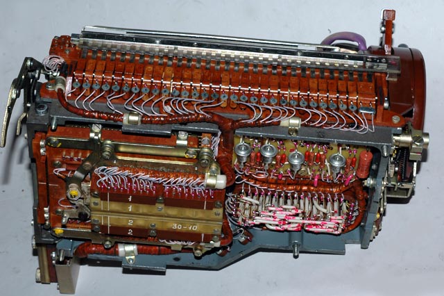 the keyboard, and the rotor mechanism. This view also shows the keyboard