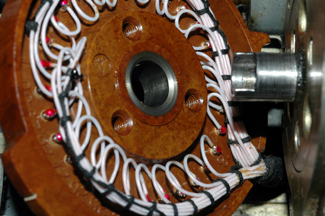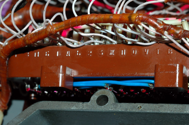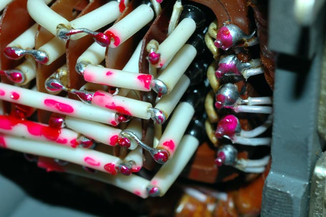 A closer view of the wiring of the input wheel. Note that each connection