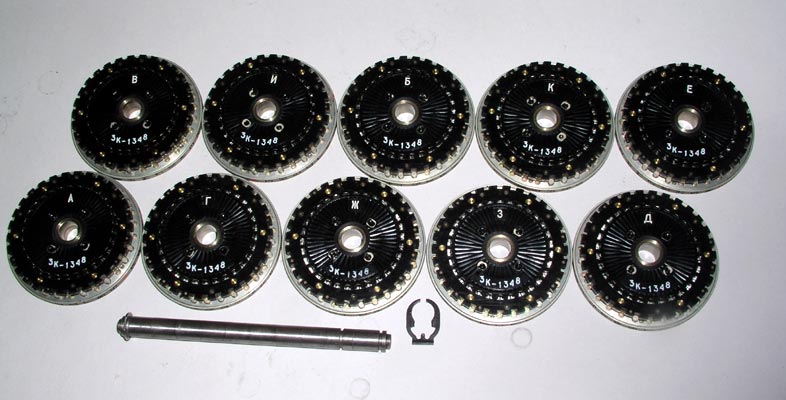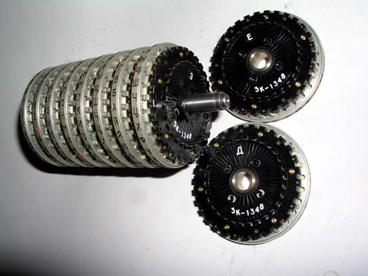 Modular Wiring Maze rotors. Pushing the pin inwards allows the outer ring to