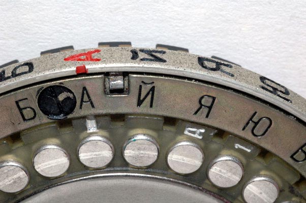 far right end of the shaft, and the shaft is placed in the Fialka. The test