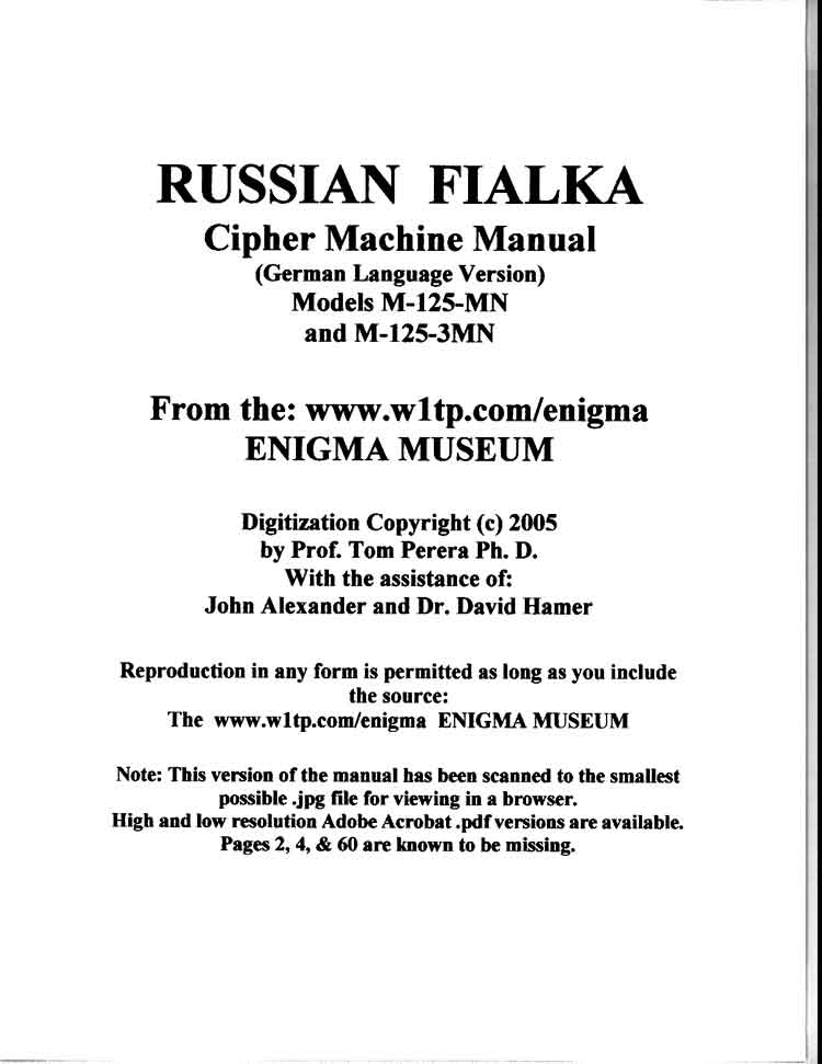 for the Russian M-125-MN and M-125-3MN Cipher Machines: