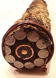 After 4 months, I removed the cable from the electrolytic bath and applied a thin layer of clear varnish to seal out moisture and eliminate the chance of further deterioration. I displayed pieces of the cable At the September - 1997 Antique Wireless Association meet in Rochester, NY., and made sections of the cable available to serious collectors and museums.